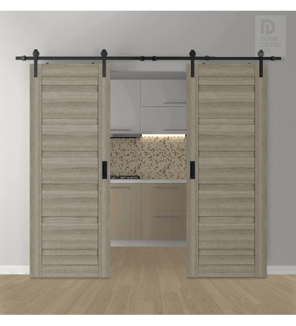 DOUBLE BARN DOOR LOUVER SHAMBOR 48" X 84" X 1 3/4" BLACK HARDWARE