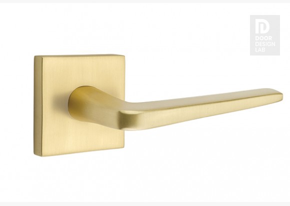 Emtek athena door lever with square rosette privacy left hand satin brass (us4) 5210