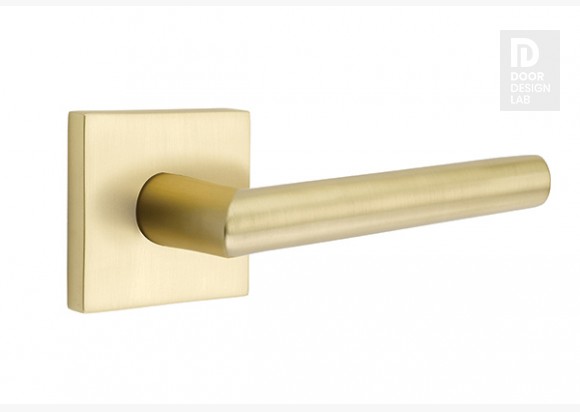 Emtek athena door lever with square rosette privacy right hand satin brass (us4) 5210