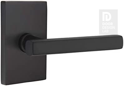 Modern Steel Front Door EMTEK BRESLIN LEVER WITH MODERN RECTANGULAR ROSETTE PRIVACY RH FLAT BLACK (US19) 5212