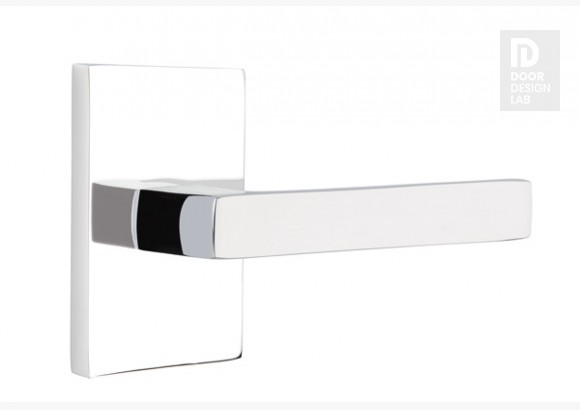 Emtek dumont door lever with modern rectangular rosette privacy left hand polished chrome (us26) 5211