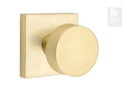 Emtek round door knob with square rosette passage right hand satin brass (us4) 5110
