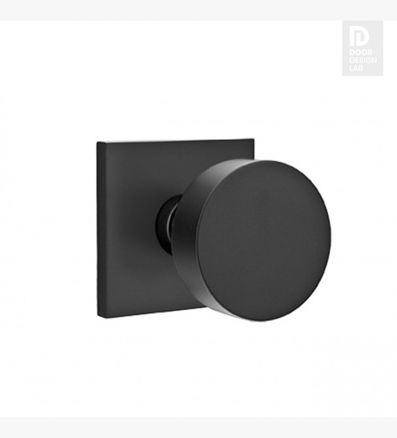 Modern Steel Front Door EMTEK ROUND KNOB WITH SQUARE ROSETTE PRIVACY RH FLAT BLACK (US19) 5210