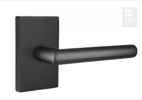 Modern Steel Front Door EMTEK STUTTGART LEVER WITH MODERN RECTANGULAR ROSETTE PRIVACY RH FLAT BLACK (US19) 5212