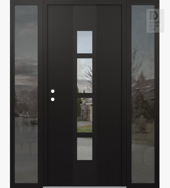 Modern Steel Front Door DIAMOND A10 64" X 80" BLACK/BLACK CLEAR GLASS PANEL BLACK LHI WITH 2 SIDELITES MIRRORED GLASS