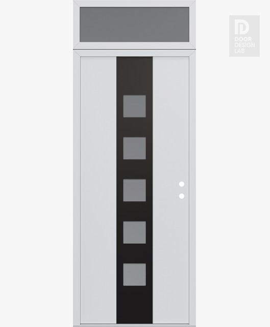 Modern Steel Front Door DIAMOND A13 36" X 96" BLACK/WHITE FROSTED GLASS PANEL BLACK RHI WITH TRANSOM FROSTED GLASS