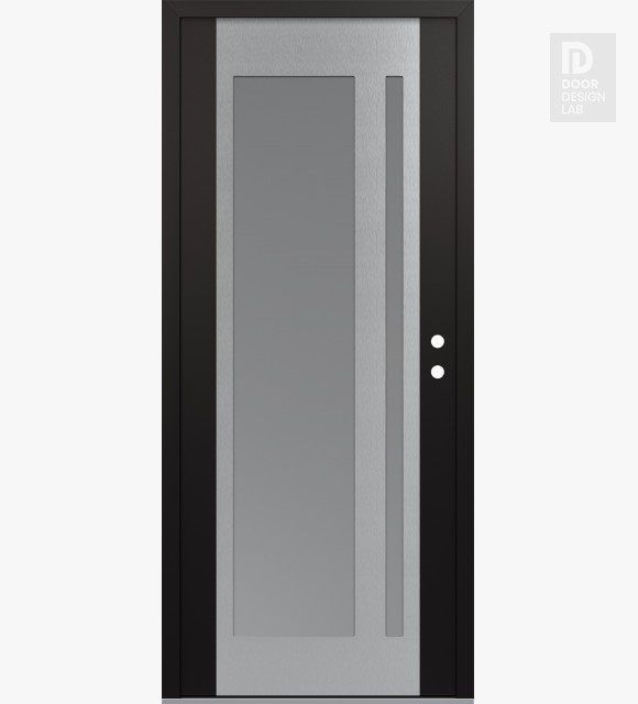 Modern Steel Front Door Diamond C15 36" x 80" black/white frosted Glass Panel stainless steel LHI