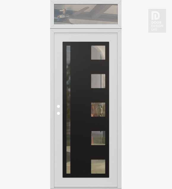 Modern Steel Front Door Diamond C3 36" x 96" white/white clear Glass Panel black RHI with Transom clear Glass