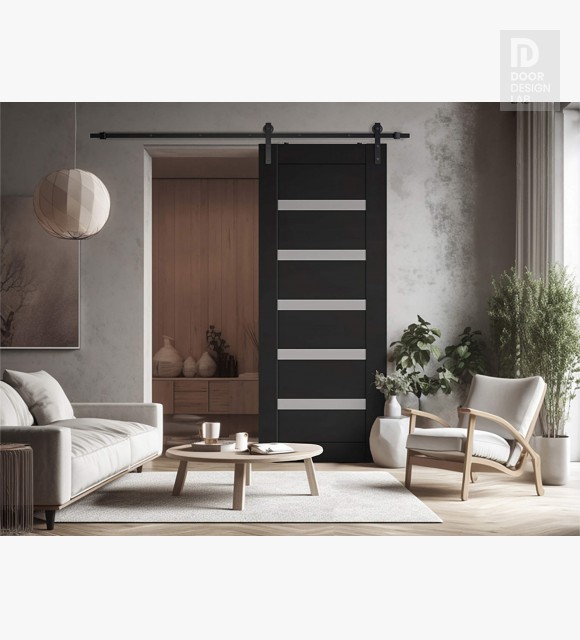 Leora Vetro Black Matte Modern Interior Barn Door by Belldinni