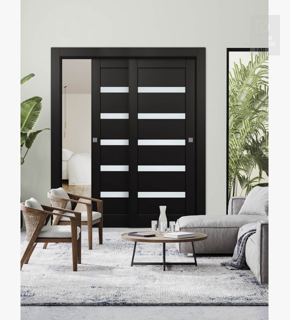 Leora Vetro Black Matte Modern Interior Bypass Doors by Belldinni