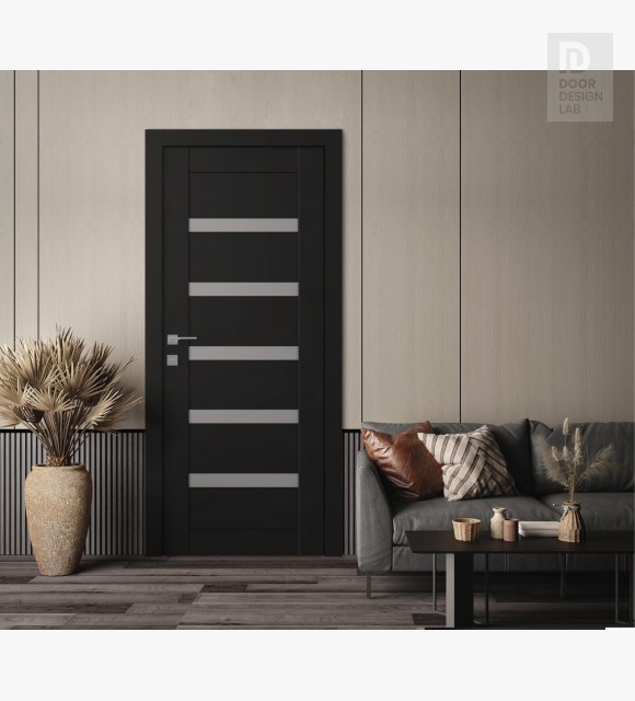 Modern design: the central motifs of the Leora Vetro are clear lines and a minimalistic style. The elegant decoration of the interior door is five glass inserts of the same size, which, together with the noble shade of the slab, will look harmoniously in any interior and fill your room with light.