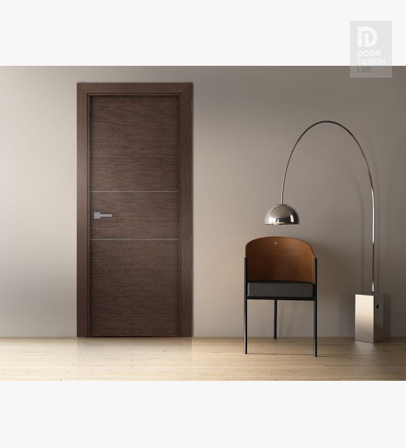 Mia 2H Wenge is decorated with shiny aluminum strips to create a sophisticated visual effect. Reflections of light give a unique individuality to the door design. A 2 strips frame and a 15 5/8” wide lock panel enhance the beauty of the door lever.
