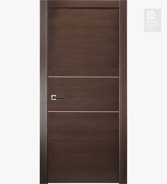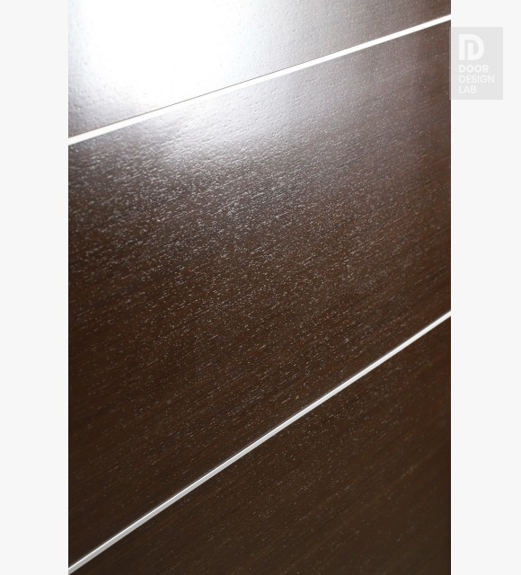 Mia 2H Wenge is decorated with shiny aluminum strips to create a sophisticated visual effect. Reflections of light give a unique individuality to the door design. A 2 strips frame and a 15 5/8” wide lock panel enhance the beauty of the door lever.