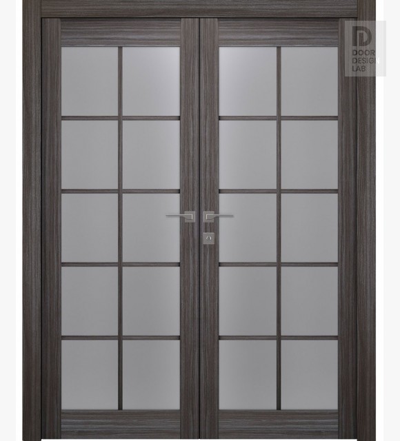 Palladio 10 Lite Vetro Gray Oak Modern Interior Double Swing Doors by Belldinni
