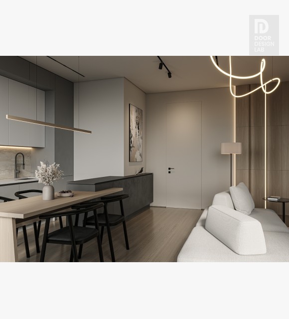 Modern design:flush-mounted door with invisible frame are the perfect choice for stylish interiors. Thanks to the minimalist design and the absence of protruding parts, they visually expand the space of a house or apartment. These type of doors fit harmoniously into any room or become an accent element of the living space.