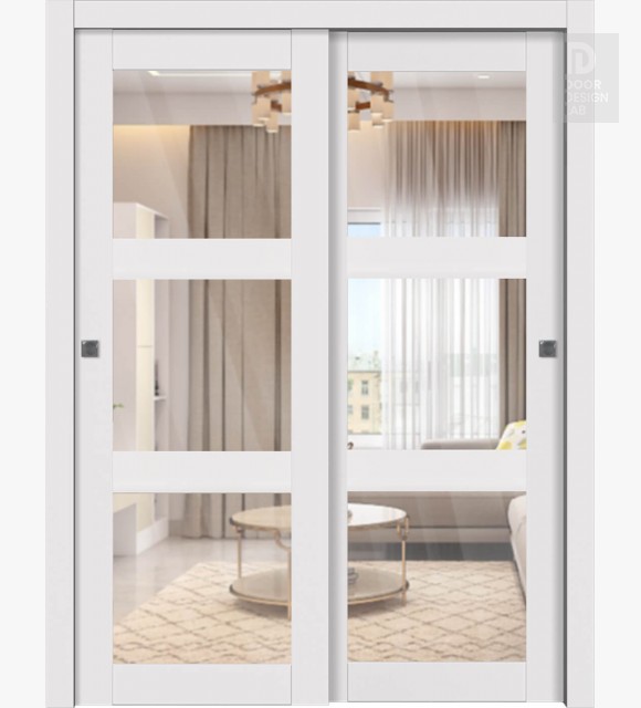 Smart Pro 3 Lite Clear Vetro Polar White Modern Interior Bypass Doors by Belldinni