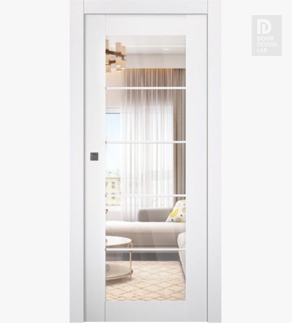 Smart Pro 5 Lite Clear Vetro Polar White Modern Interior Pocket Door by Belldinni